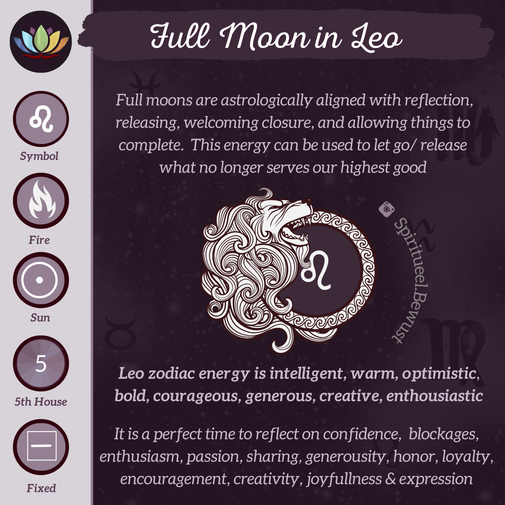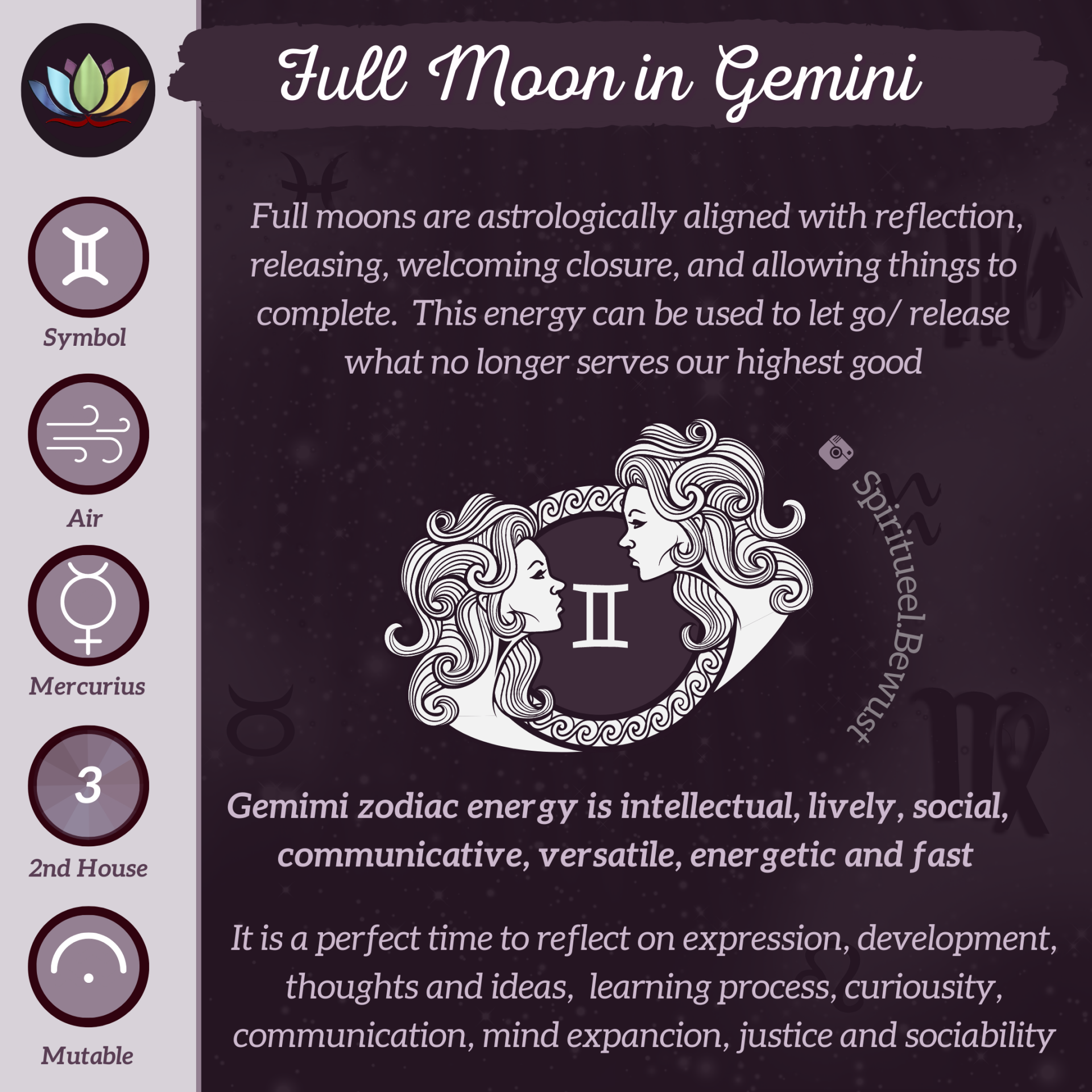 During the full moon, emotions and feelings are intensified. The full moon energy is therefore suitable for a ritual to process emotions and let go of anything not in your best interest. The ritual can be shaped in various ways, as long as it is carried out with the right intentions. Reflect on your current situation, identify people, emotions, and patterns blocking or hindering you, process and release them. Focus on the positive feeling or result you'll experience when that aspect of your life is closed. Closing the old creates space for new things to enter. After letting go, give extra attention to what you want to manifest (new moon wish) so it can unfold during the full moon, reinforcing these intentions.